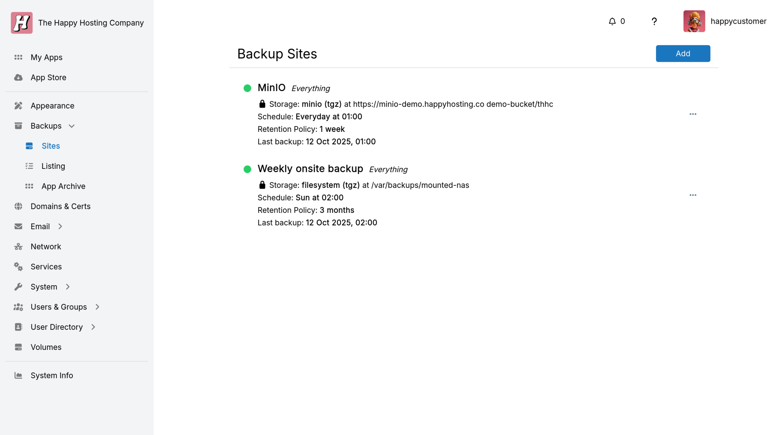 Peace of mind, automated, with a seven day retention period. In the Backups View, you can see exactly when your apps were last backed up, where they’re stored, and restore any snapshot with a single click. Daily backups run quietly in the background, keeping your data safe from accidents, upgrades, or “oops” moments – your data always has a safety net.